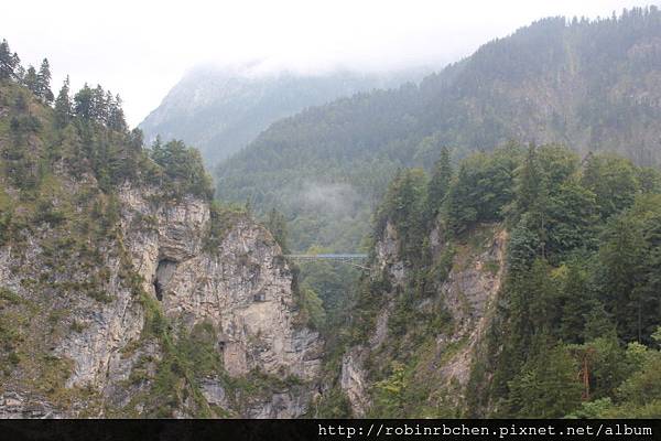 據說瑪莉恩橋附近是觀看新天鵝堡最美的角度,從這個角度望去,矗立在翁鬱山林間的新天鵝堡,襯著背後廣袤的平原與湖泊,呈現出如同仙境般的絕美圖畫......,很多風景月曆的照片,都是在這裡取景的。