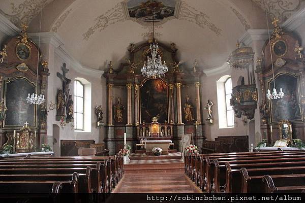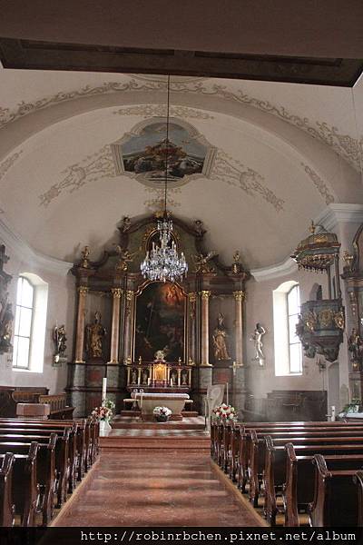 教堂內部裝飾採巴洛克風格,但是相當樸實,有別於一般巴洛克教堂的華麗。