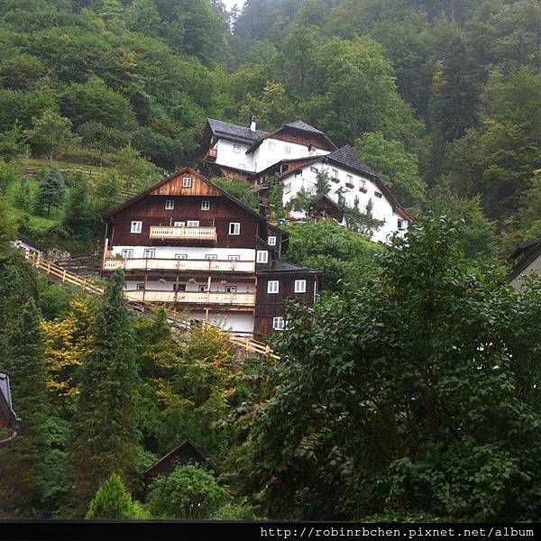從聖吉爾根前往哈修塔特的途中,也是細雨綿綿。奧地利的湖區,與瑞士的湖區略有不同:在瑞士,低緩的山坡上,多半鋪著綠油油的草坡,可供畜牧;奧地利的湖區則山勢陡峭,一眼望去,不是青綠靜謐的湖泊,就是翁鬱高聳的山巒。