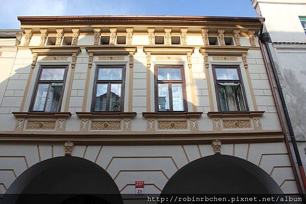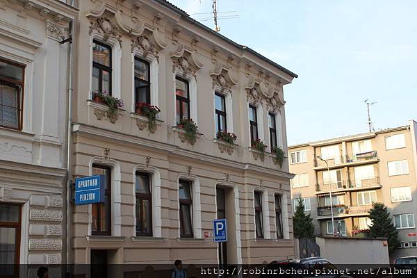 雖說這裡並非老城區,但捷克真是一個到處充斥著古老建築的國家啊,我們住的這條街,巴洛克式的宅邸,比比皆是。這是我們透過booking.com所訂的民宿,居然是一棟巴洛克宅邸。我們在布拉格時住的Airbnb,也是一棟「巴洛克豪宅」(可參考這裡:【捷克 ● 布拉格】見證猶太人的奮鬥歷史@猶太區Josefov:魯道夫音樂廳、猶太墓園、葬儀廳、克勞森猶太教會堂、猶太人市民會館、舊-新猶太教會堂、平卡斯猶太教會堂、巴黎大街、巴洛克豪宅中的Airbnb 公寓)。在捷克旅遊,一不小心,就會住到古蹟裡頭!!