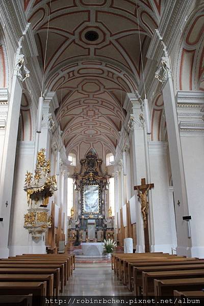 教堂內部也是採巴洛克風格,但屬於相當簡潔的巴洛克樣式。