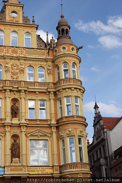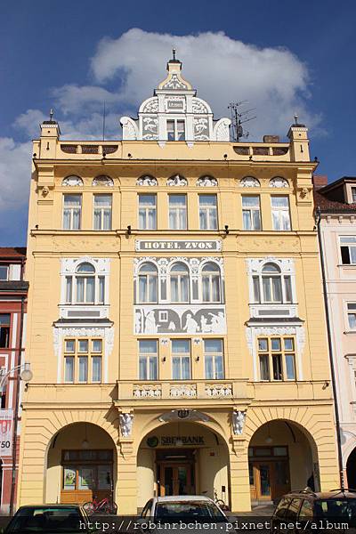 位於廣場東側最醒目的建築,當屬這ZVON Hotel,它巧妙融合了巴洛克造型與文藝復興式刻畫,加上一個造型特殊的波希米亞式山牆,貴氣十足!
