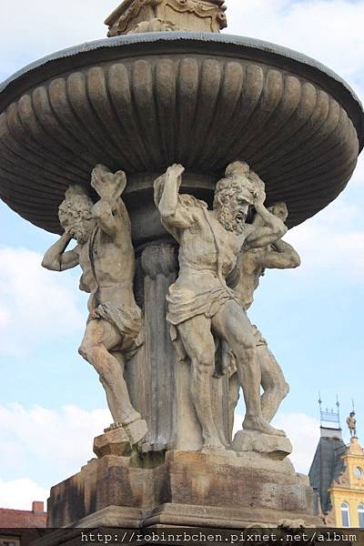 這座建於1726年的巴洛克式的雕刻噴泉,以大力士參孫降獅的神話為題材,是由波希米亞的石匠與雕刻家所合力完成。