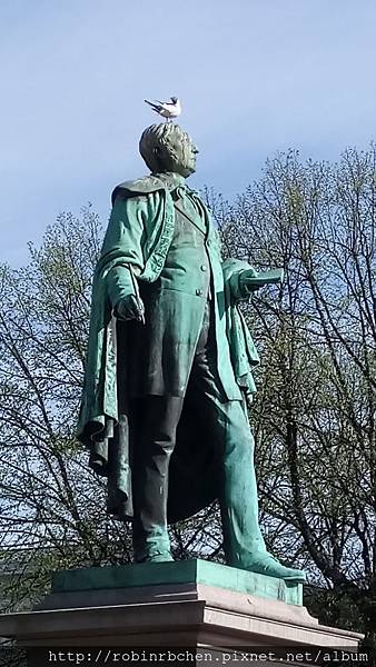 噴泉池畔有Henrik Wergeland 的雕像 – 挪威的國父