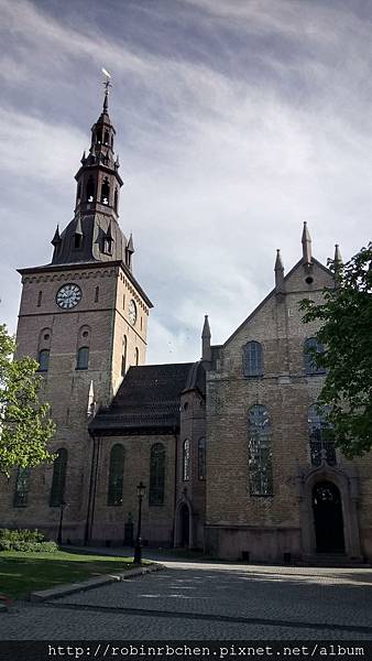 奧斯陸大教堂 (Oslo DomKirke),建於1697年,教堂外觀融合了文藝復興與巴洛克風格、還有些許哥德式的建築元素,這裡也是挪威國教路德教派的大本營。