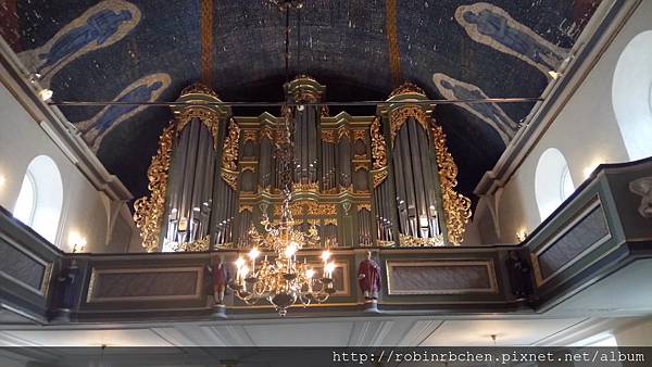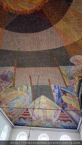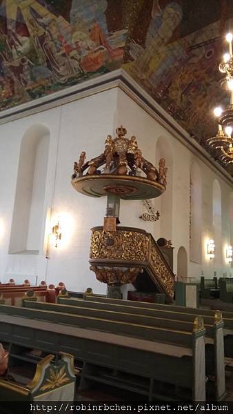 因屬路德教派的關係,教堂內部簡單樸素,唯獨這面彩繪天花板,絢麗斑斕!