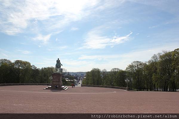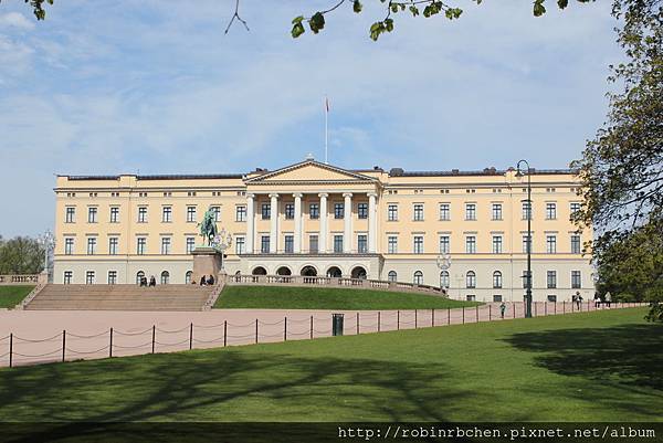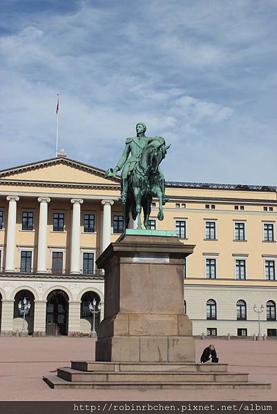 皇宮前的雕像,不是挪威人,而是瑞典國王卡爾‧約翰 (Karl Johan),這是由於1814-1905年之間,挪威都是屬於瑞典所管轄。