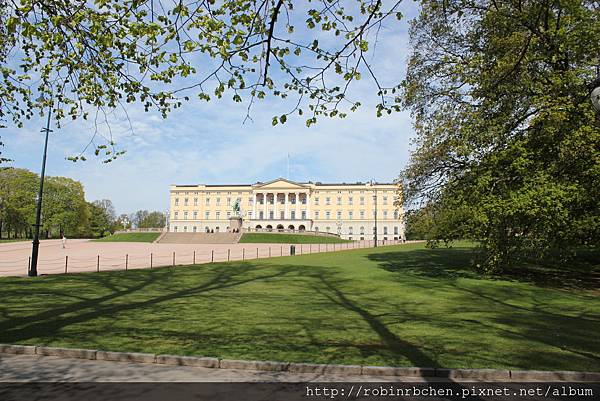 這片森林是皇宮公園,再過去點,矗立著宏偉的奧斯陸皇宮 (Det Kongelige Slottet)