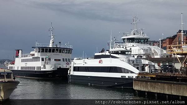 渡輪碼頭邊,停泊了大大小小的船隻。