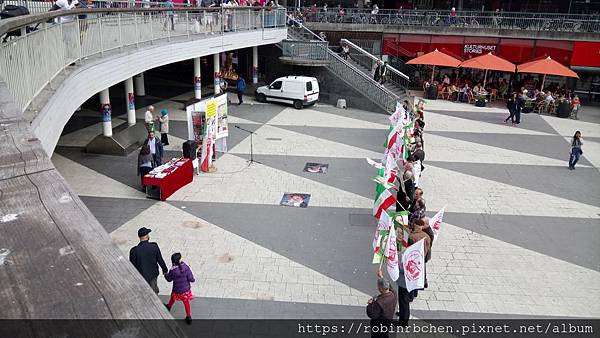 當時廣場上有團體在抗議,不過過程還蠻平和。Google 了一下,抗議團體所舉的旗幟,應該是伊朗國旗。