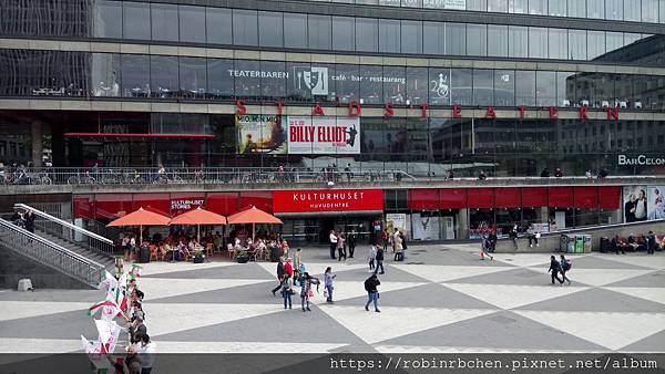 廣場旁的玻璃帷幕大樓,是斯德哥爾摩文化中心 (Kulturhuset stadsteatern),裡頭有歌劇院、電影院、藝廊、商店街......