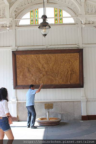 大溫泉迴廊內部空間非常寬敞,除了設置了一整排的溫泉汲取台之外,還有好幾家商店。每一口溫泉的味道、溫度都不一樣,不過同樣都有很重的硫磺、鐵鏽味,如果不排斥這氣味,不妨逐一品嚐看看 XD