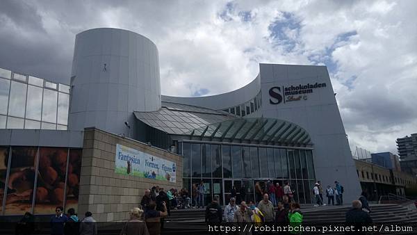 【巧克力博物館】位於萊茵河上,一座狀似碼頭的離島上面。需要步行通過一座鐵橋,才能踏上小島。