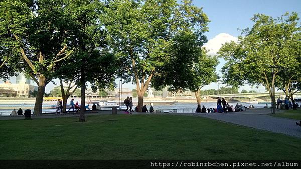 公園旁有一整排的餐廳、酒館,提供露天雅座及道地的科隆啤酒......