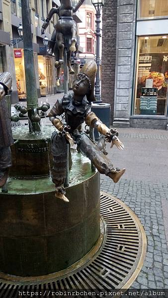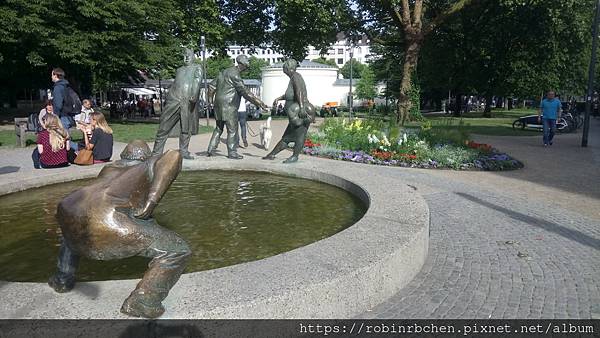 從火車站步行到亞琛大教堂的途中,會經過一處名為【金錢循環Kreislauf des Geldes】的雕像噴泉,我20多年前還曾在此留影,那時數位相機尚未普及,我的照片是去照相館「洗」出來唷!