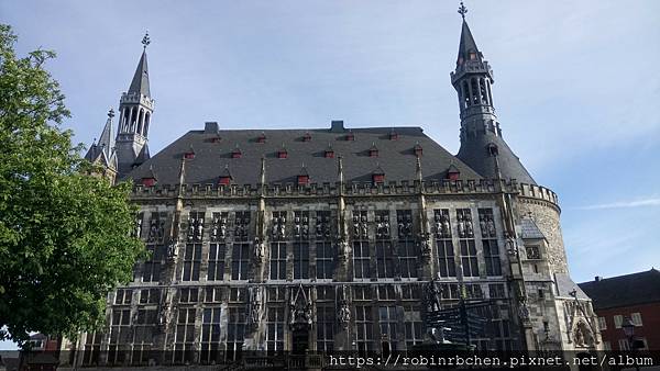【亞琛市政廳】與亞琛大教堂,僅隔著一座廣場。與亞琛大教堂隔著廣場的這面,其實是市政廳的背面,樣式較古樸簡單。
